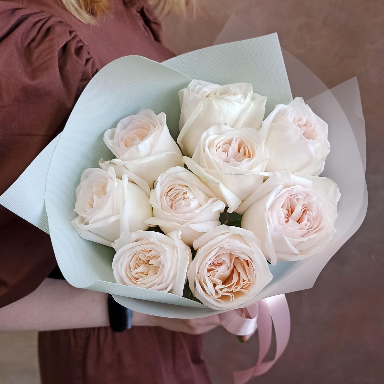 Букет из 9 роз сорта Вайт Охара в упаковке