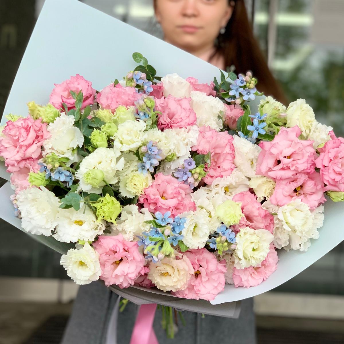 Оксипеталум, кустовой, голубой, 50 см - 10 шт Эвкалипт Гунни - 1 шт Эустома (Лизиантус) Алиса, белая - 10 шт…