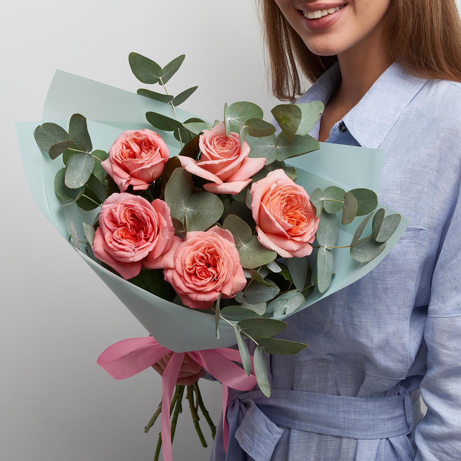 Монобукет из 35 персиков роз Лондон Ай в дизайнерской упаковке
