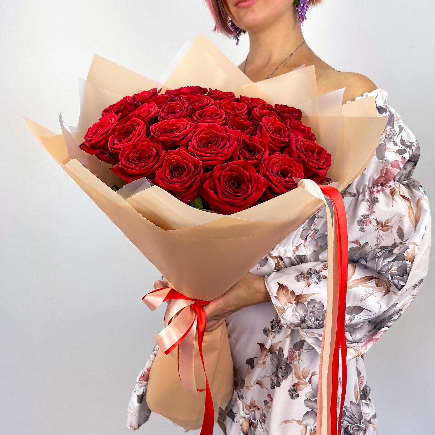 Роза Ред Наоми, 60 см. - 45 шт Пленка матовая кремовая - 1 шт Пленка матовая, прозрачный - 1 шт…