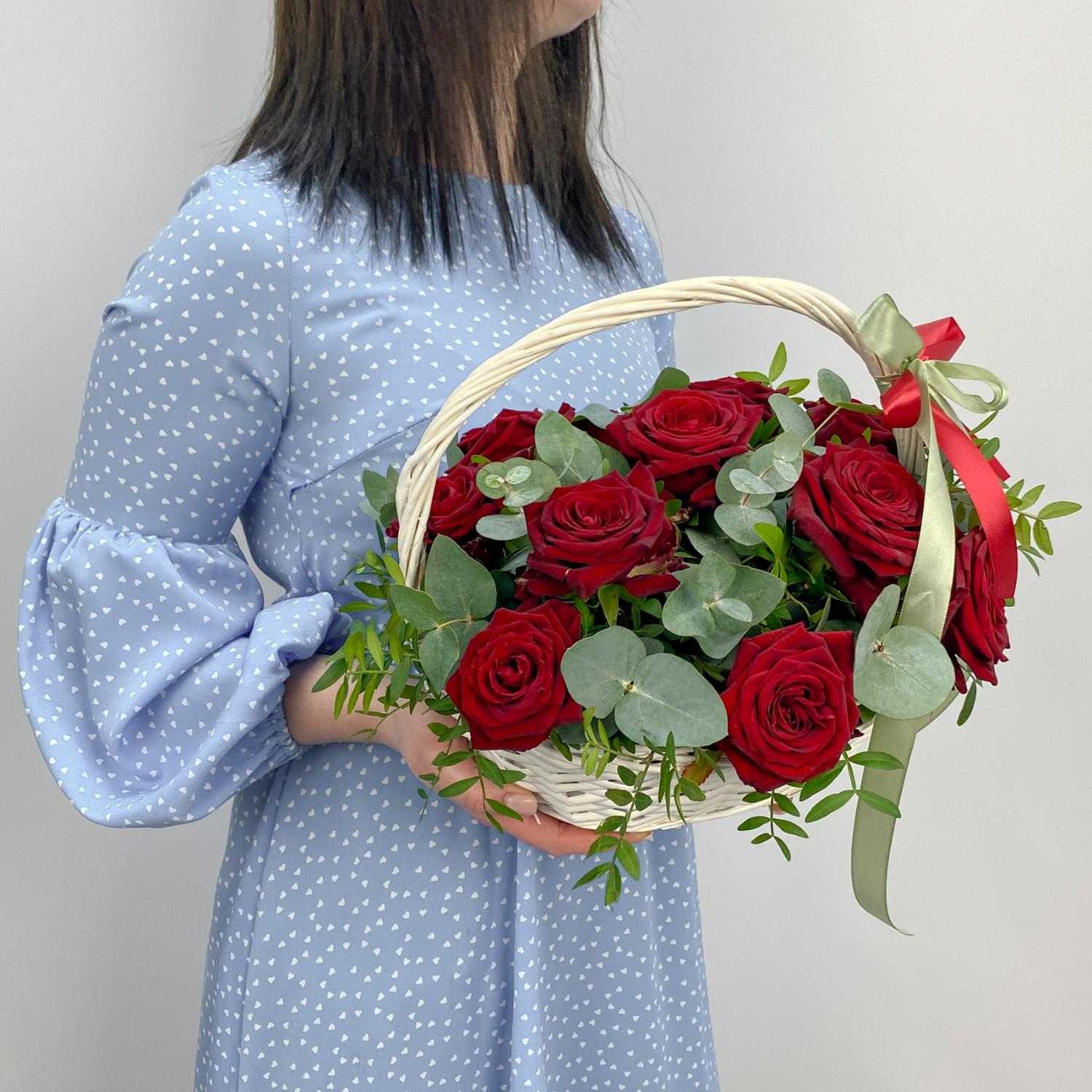 Композиция из 11 роз Ред Наоми 60 см в белой корзине