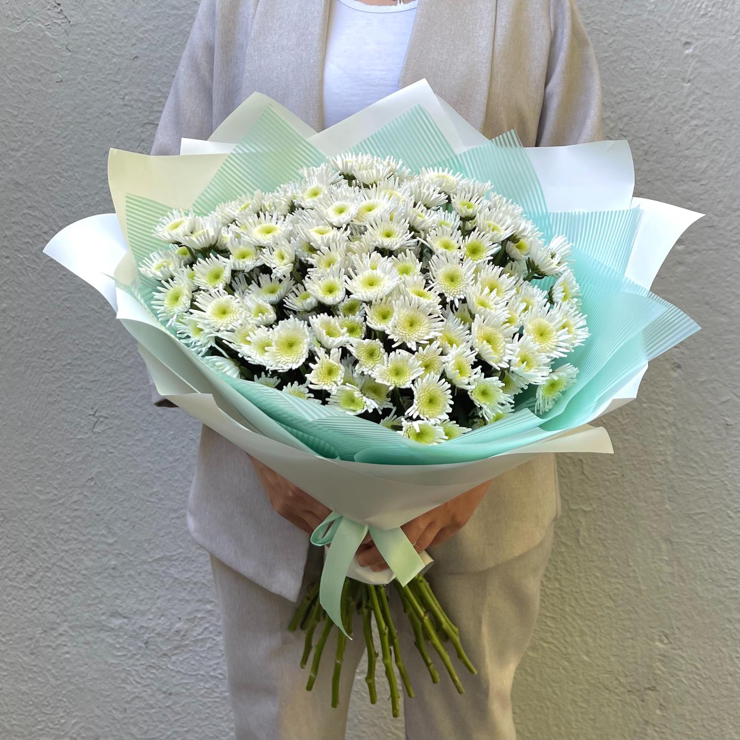 Монобукет из белых сантини в упаковке