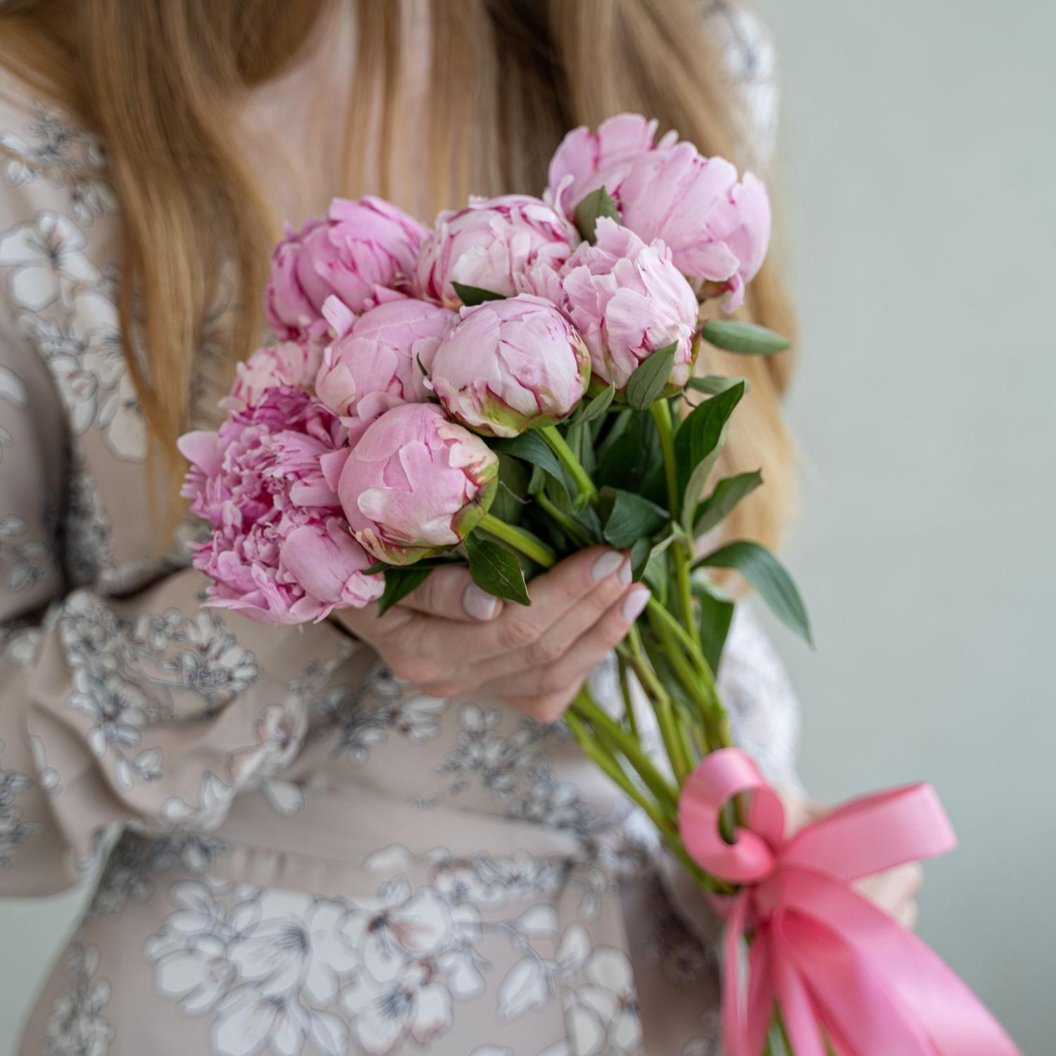 Монобукет из 9 розовых пионов сорта Сара Бернар