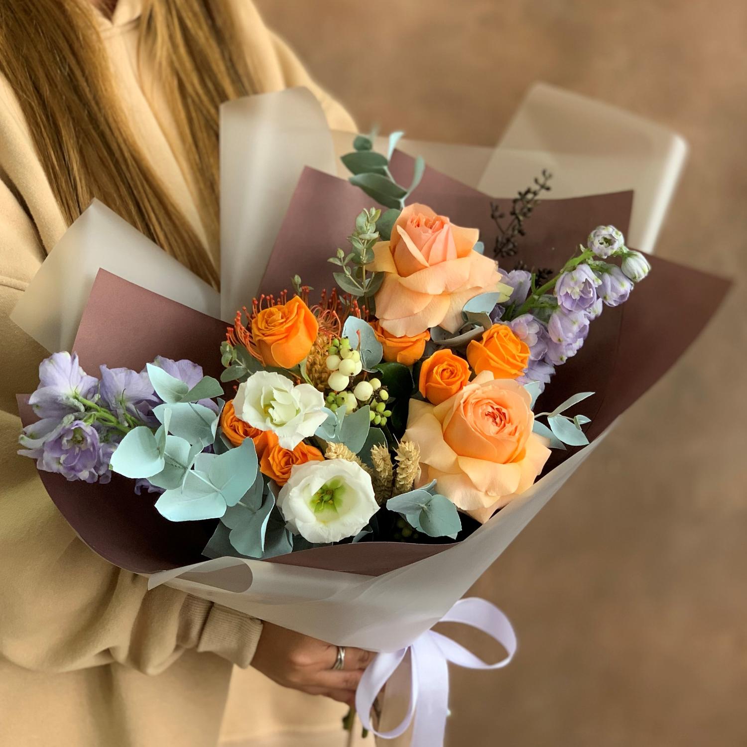 • Роза кустовая, оранжевая, 40 см. — 2 шт