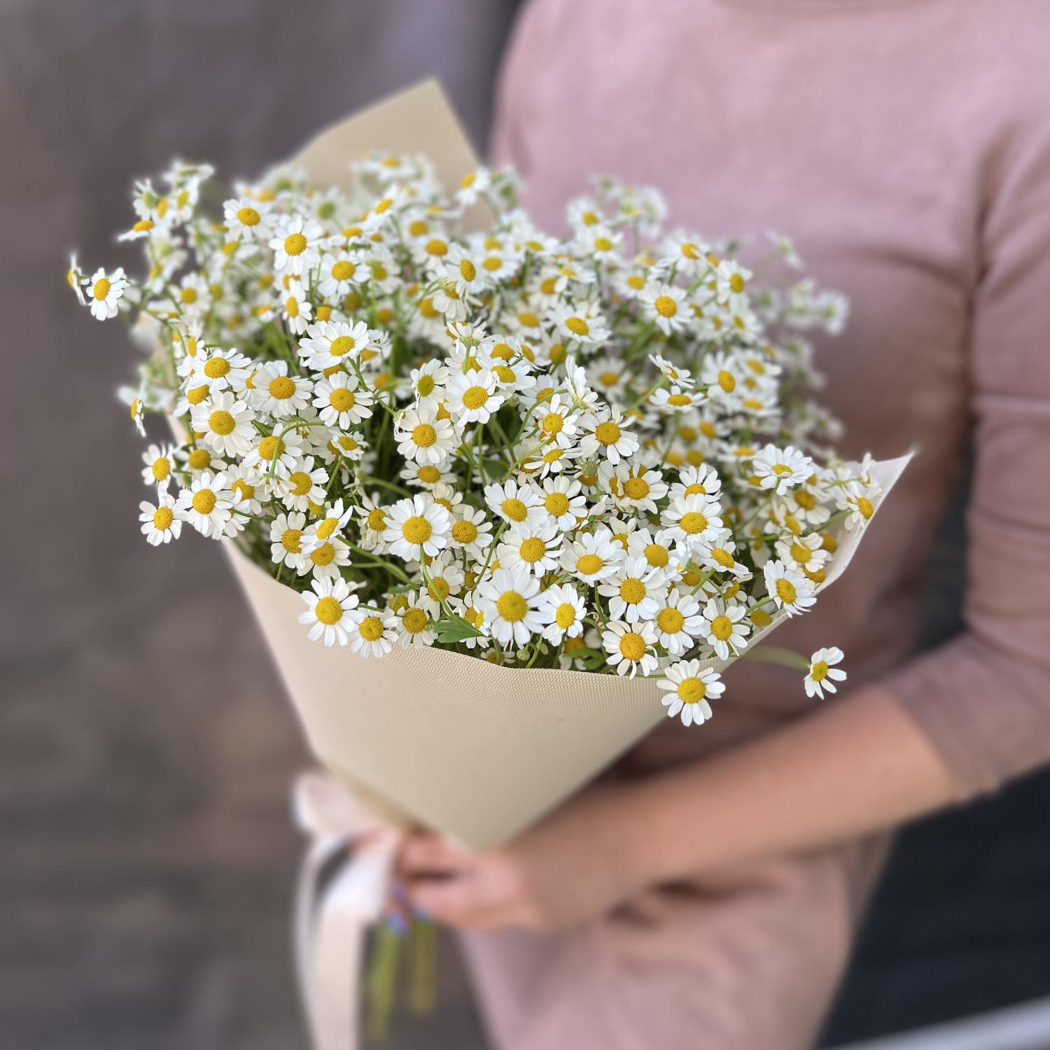 Монобукет из ромашки в упаковке