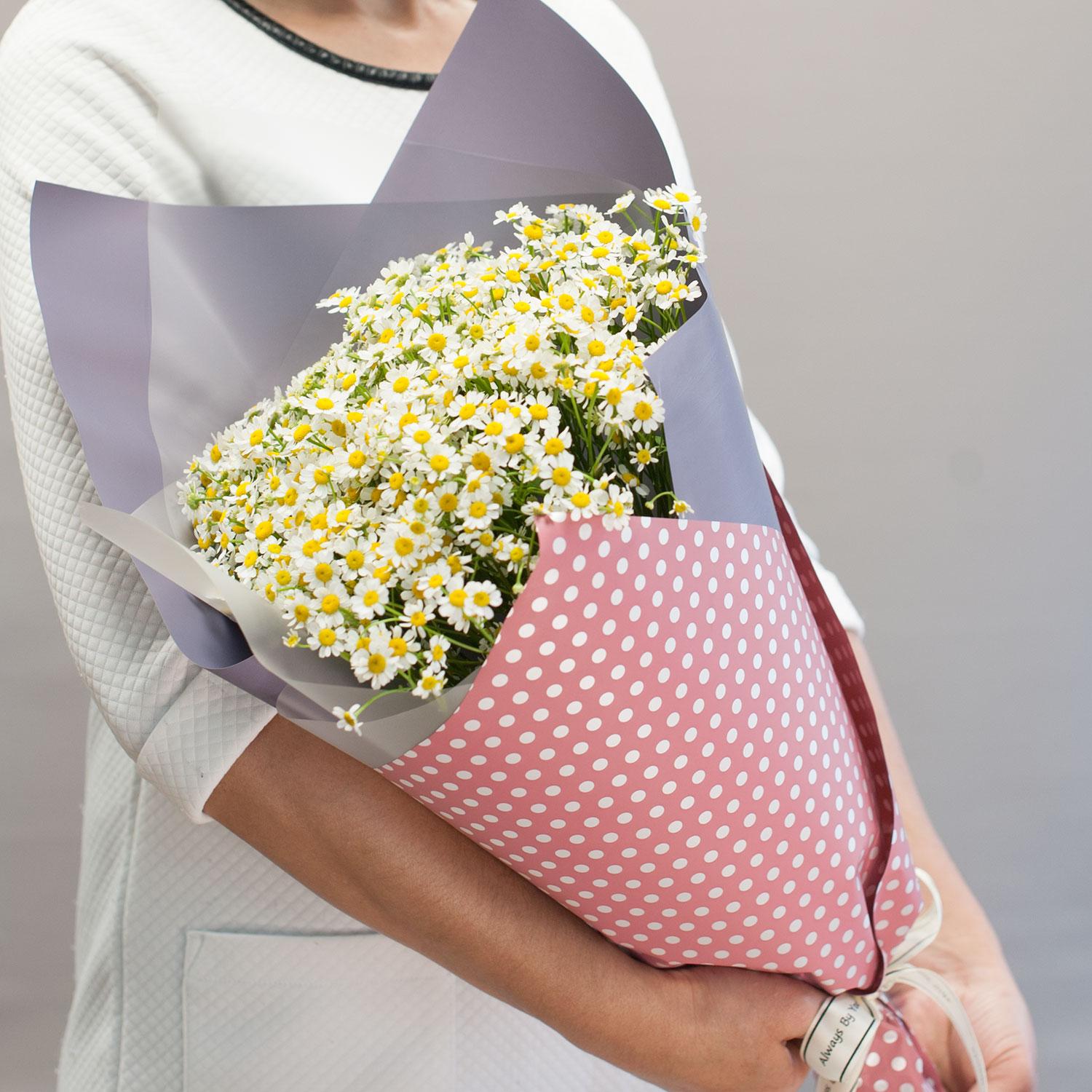 Букет из кустовой ромашки в дизайнерской упаковке