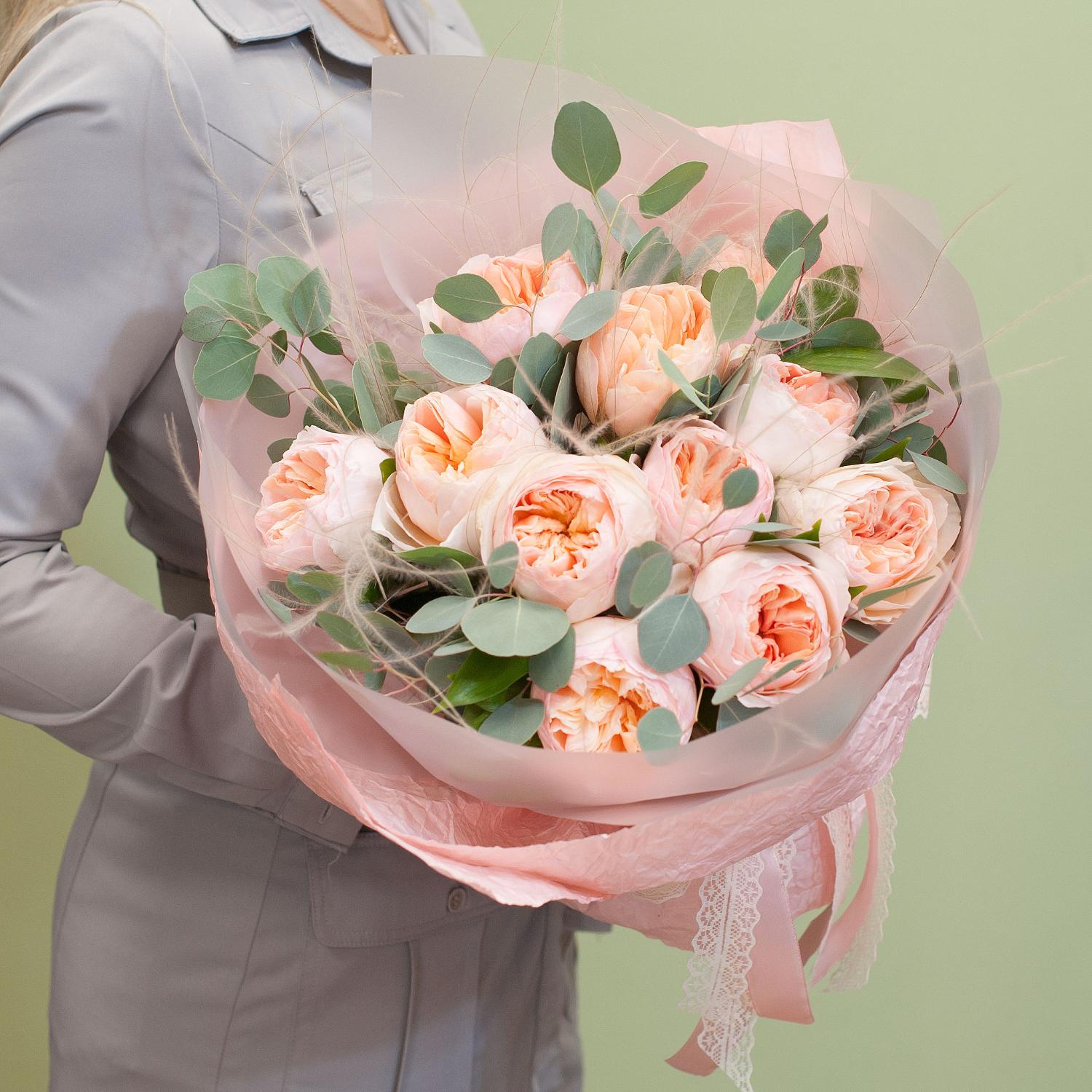 Монобукет из 11 пионовидных роз в крафтовой упаковке