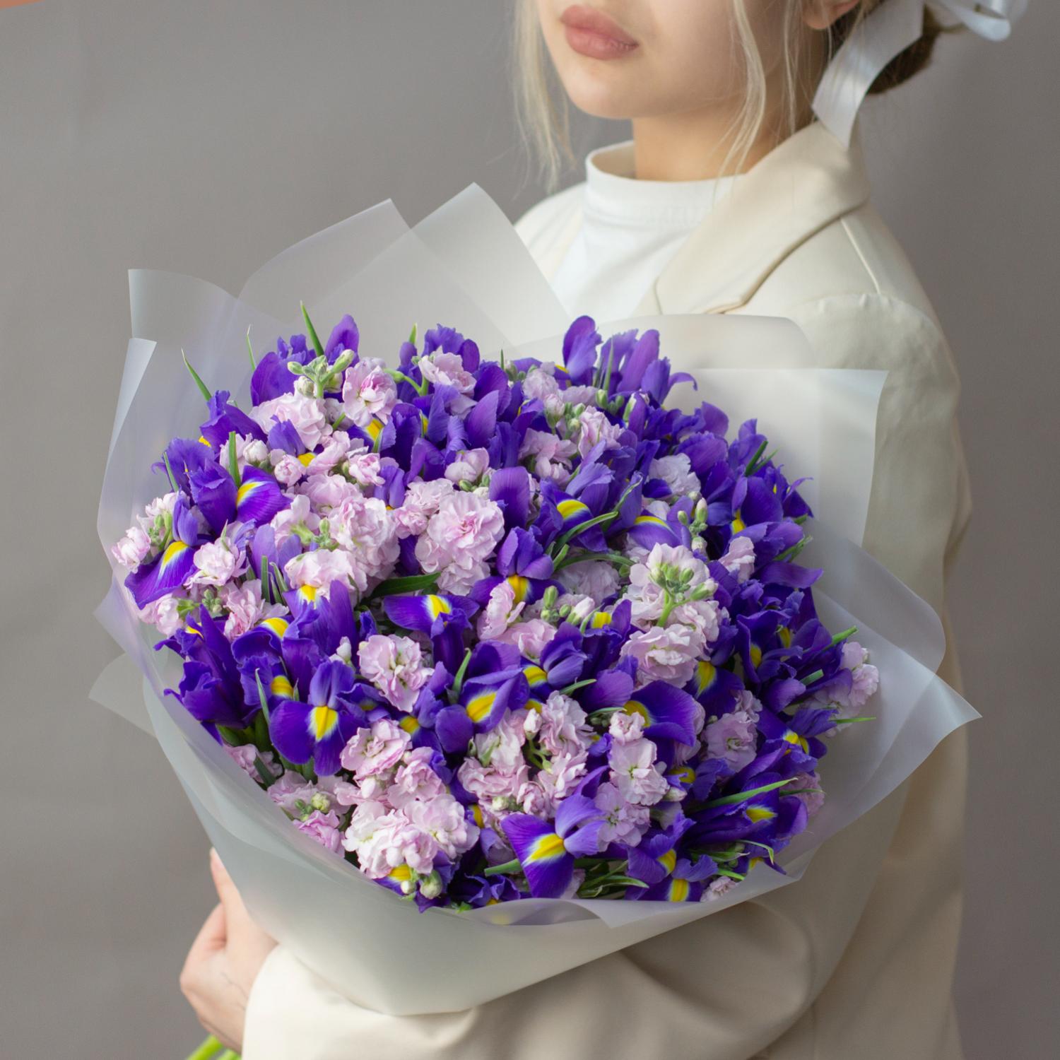 Ирис, синий - 25 шт Маттиола (Левкой) розовая - 7 шт Писташ зеленый - 1 шт Пленка матовая, прозрачный -…